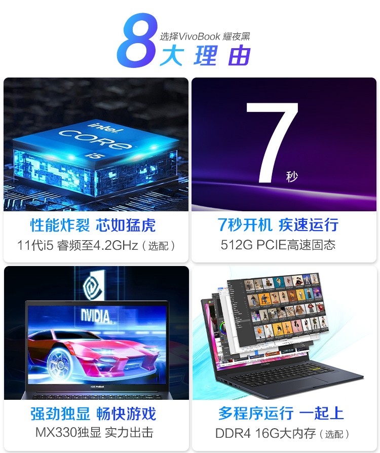 • 商品名称:华硕(ASUS)VivoBook14X 英特尔酷睿 新品14英寸轻薄本笔记本电脑 耀夜黑 第11代i5 16G 512G MX330