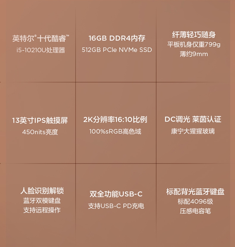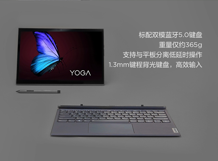 联想(Lenovo)YogaDuet 英特尔酷睿i5 13英寸 二合一平板笔记本电脑 i5-10210U 16G 512G 2K触控屏 人脸识别 标配背光蓝牙键盘