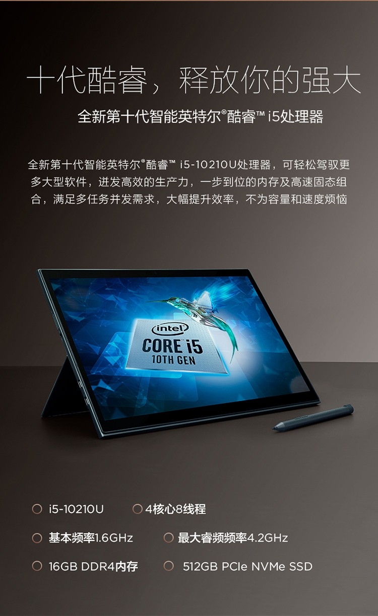YogaDuet 英特尔酷睿i5 13英寸 二合一平板笔记本电脑 i5-10210U 16G 512G 2K触控屏