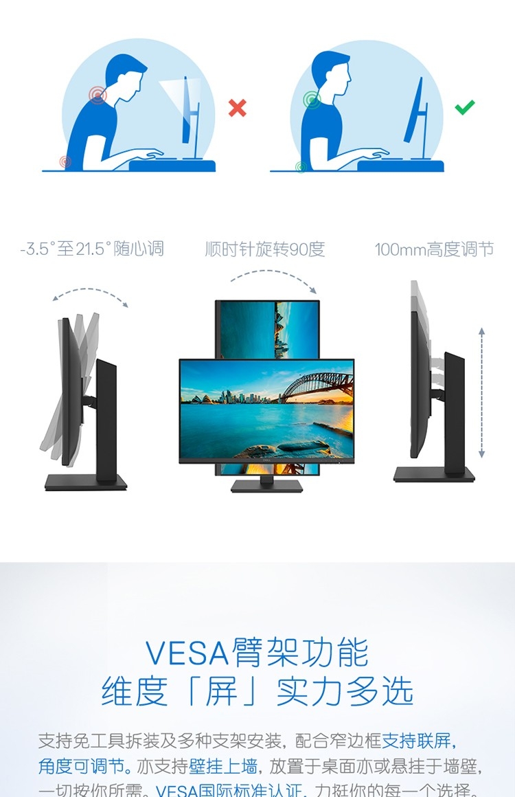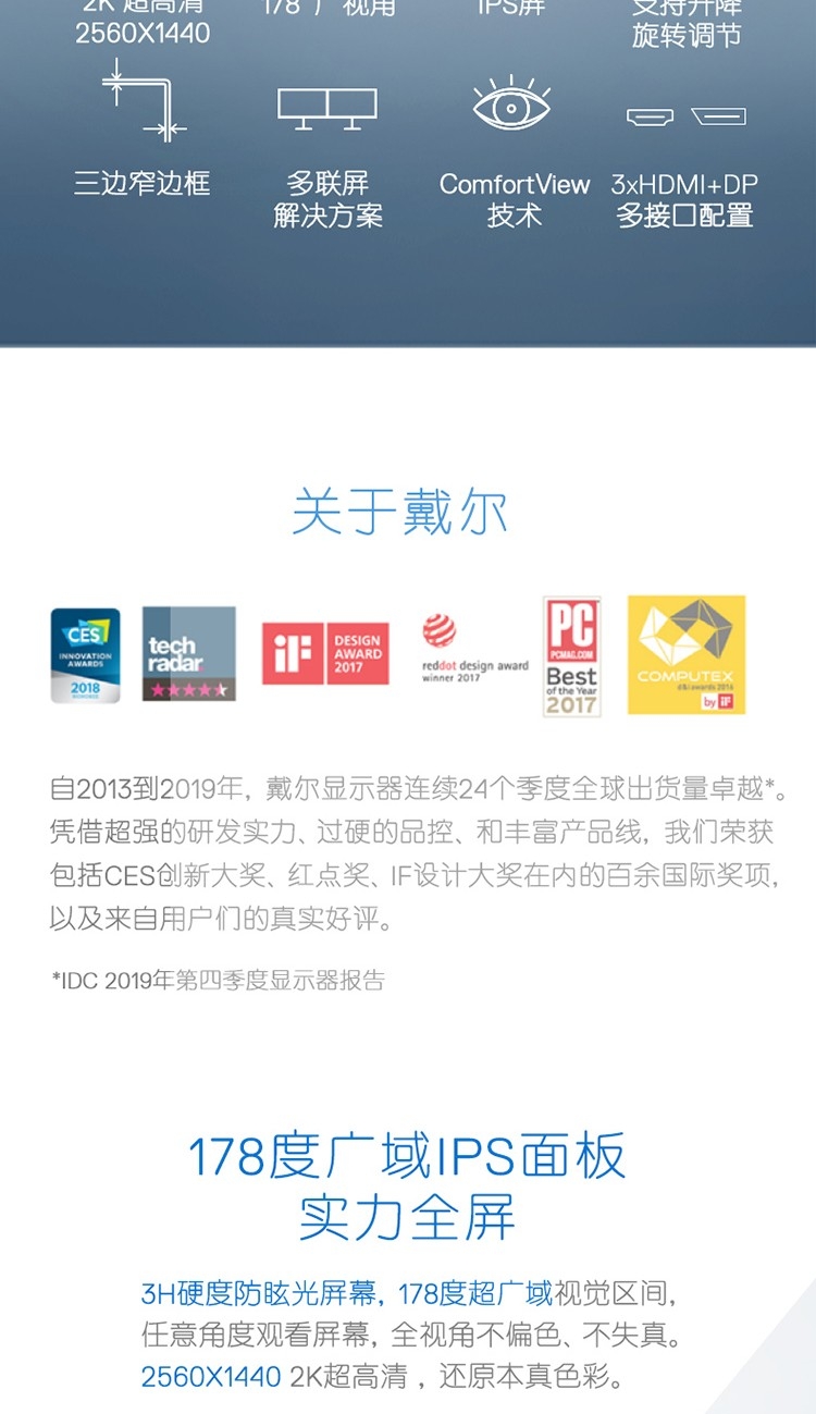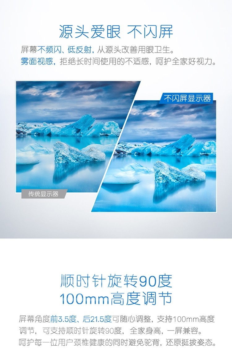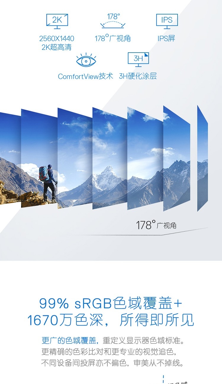 23.8英寸 2K IPS 旋转升降 爱眼低蓝光 三面微边框 专业设计绘图 电脑显示器