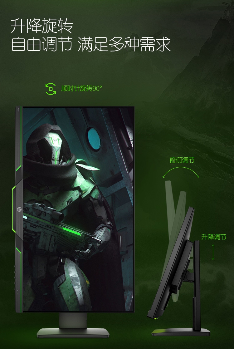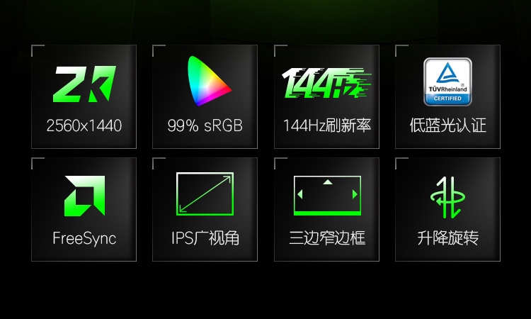 2K IPS 144Hz 升降旋转 FreeSync 电竞 低蓝光 电脑显示器(带HDMI线)