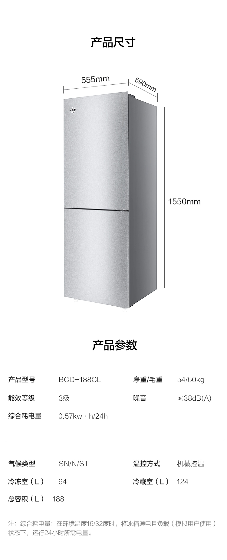 晶弘188升迷你小型两门电冰箱 瓜果水润 节能低噪 宿舍租房小巧不占地