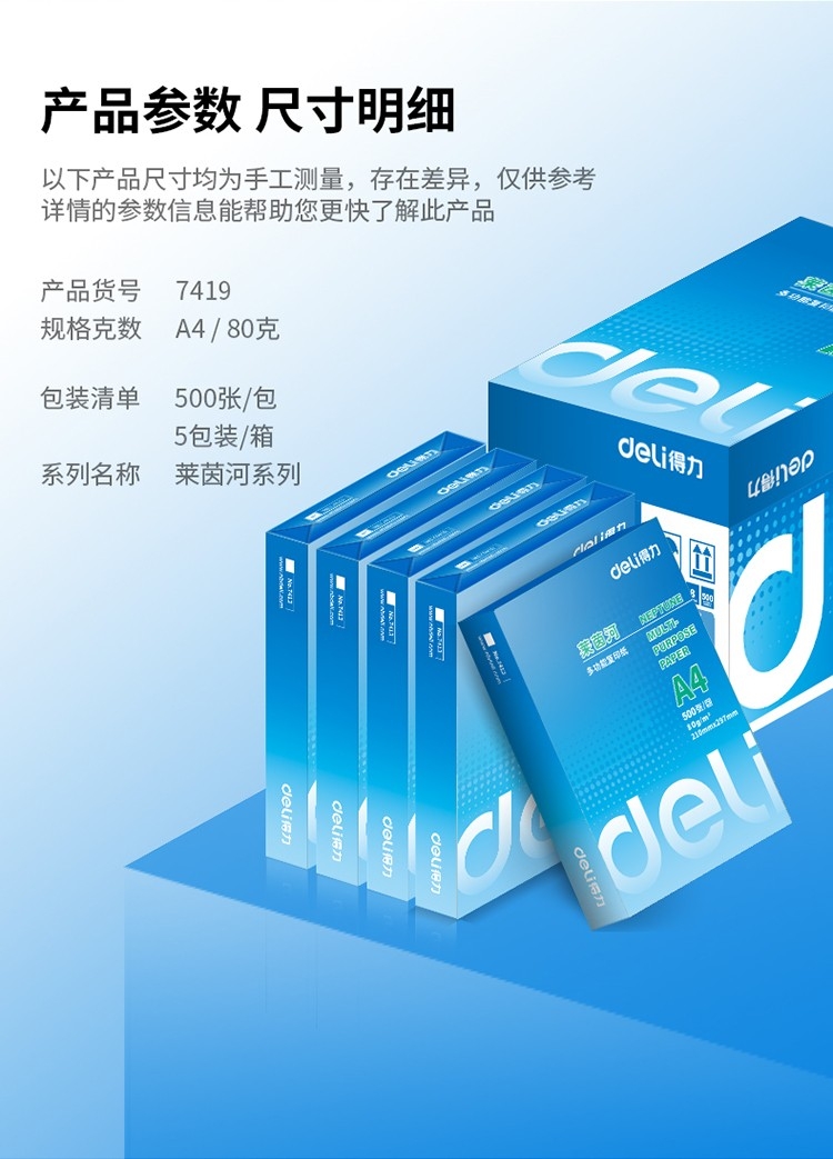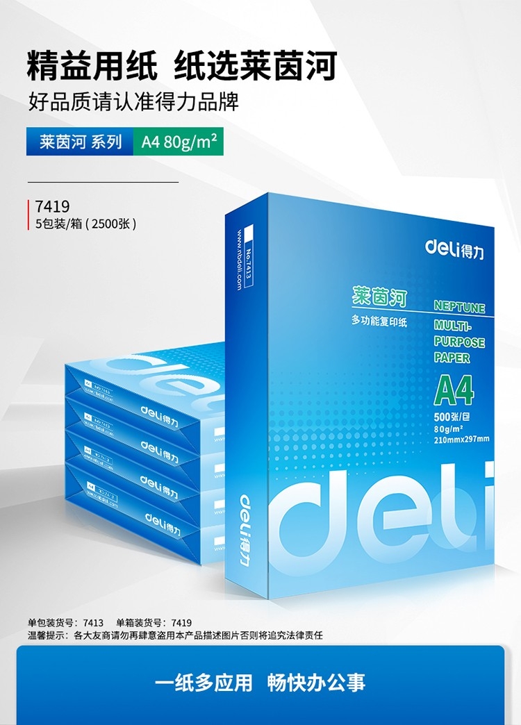 莱茵河 80g A4 复印纸 中高档打印纸 500张/包 5包1箱