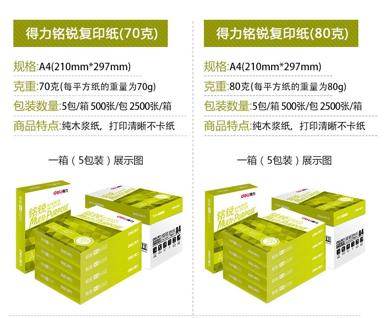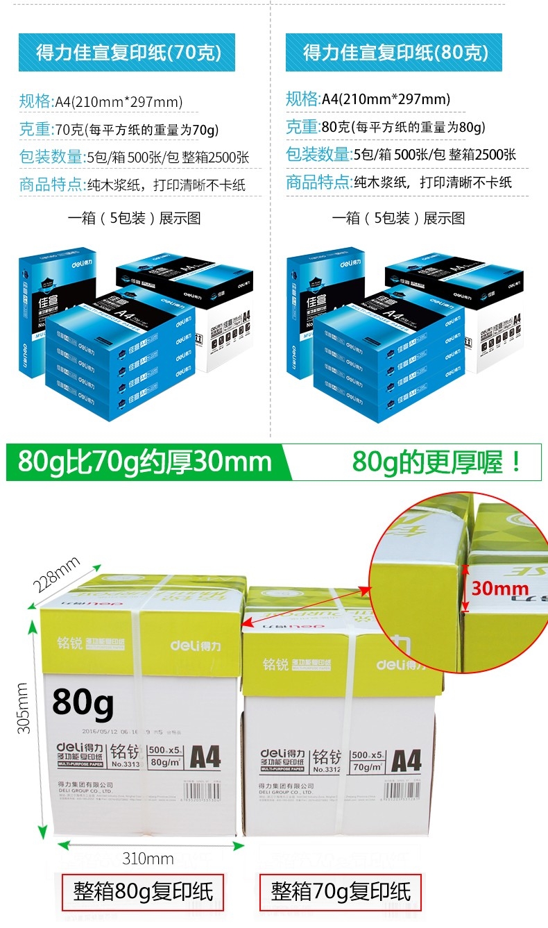 a4打印纸a4纸打印白纸复印纸70g 80g办公用打印纸A4加厚整箱/5包