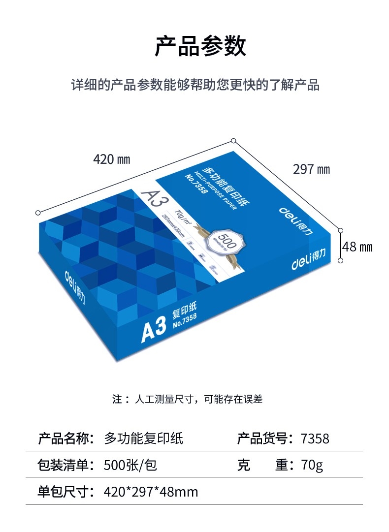 A3复印纸打印纸70g办公用纸学生用多功能双面a3白纸草稿纸2000张整箱办公用品批发 A3-70g整箱/2000张